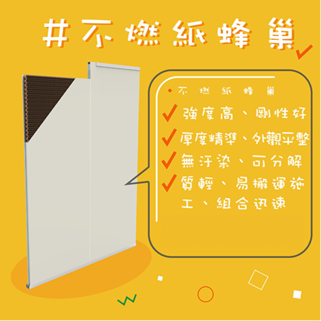 如:辦公室及員工、學生宿舍, 採特殊蜂巢結構, 增加抗壓性,不必擔心強度之問題。